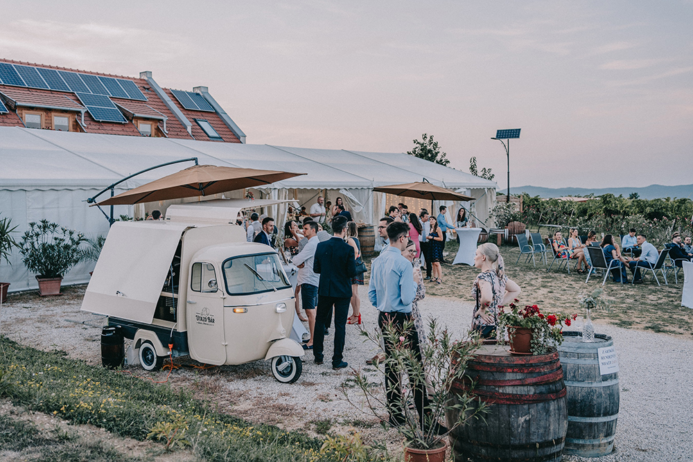 Az utazó bár egy olyan országosan elérhető mobilbár szolgáltatás, amely magával ragadó élményt kínál különleges eseményekhez, például céges partnertalálkozókhoz, promóciókhoz, céges naphoz, megnyitókhoz, de csodálatosan illik elegáns, vintage stílusú esküvőkhöz, vagy akár jeles születésnapokhoz is. Gyönyörűen felújított háromkerekű olasz Piaggio Ape furgonunkat olyan berendezésekkel láttuk el, hogy az nem csak dekoratív, de biztosítja a csapolt italok kiváló minőségét, akár extrém melegben is frissítő, hideg italok szervírozását.
